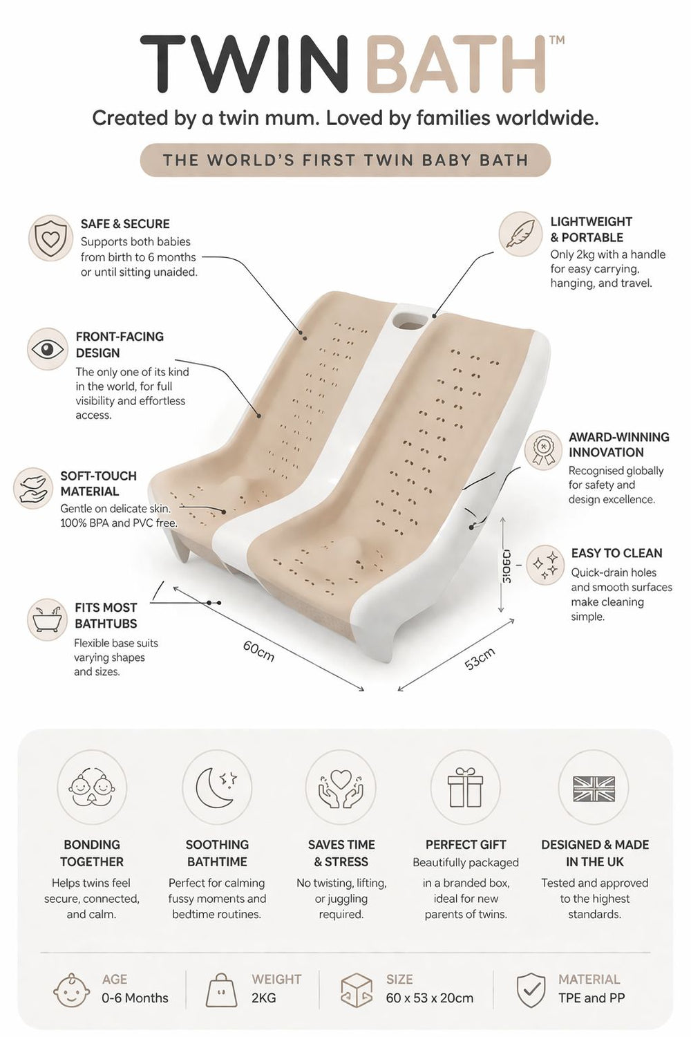 Perfect for twins, siblings, or parents seeking a complete, high-quality bath setup without compromise.